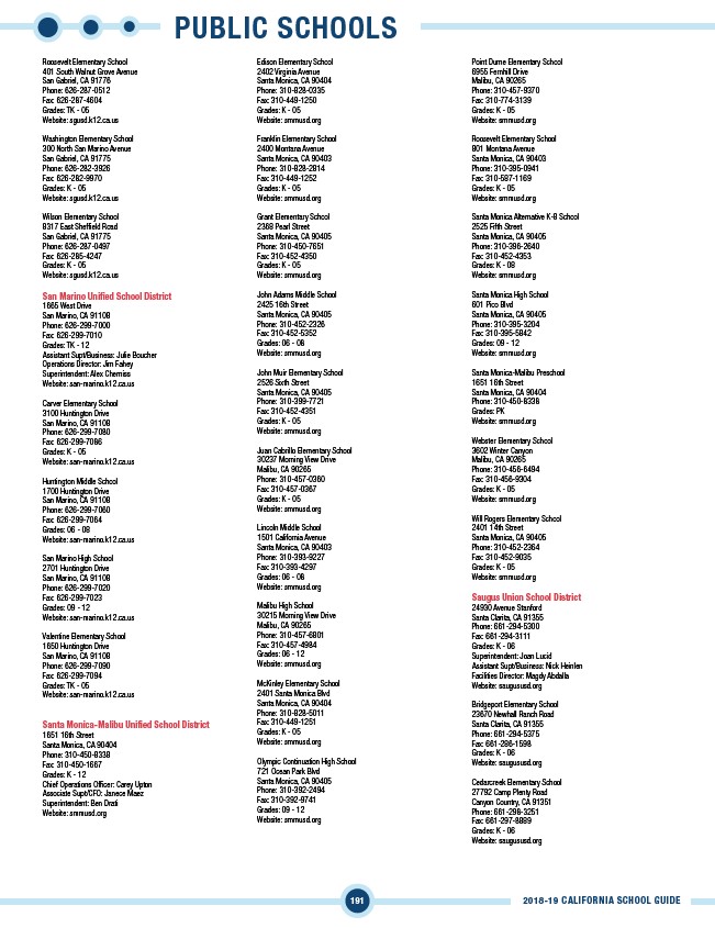 191 2018-19 CALIFORNIA SCHOOL GUIDE