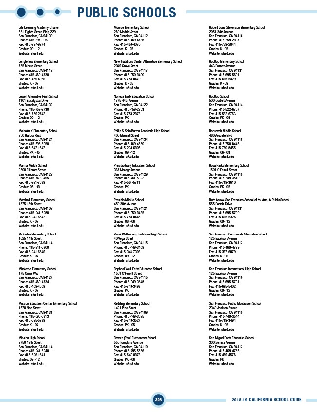 326 2018-19 CALIFORNIA SCHOOL GUIDE