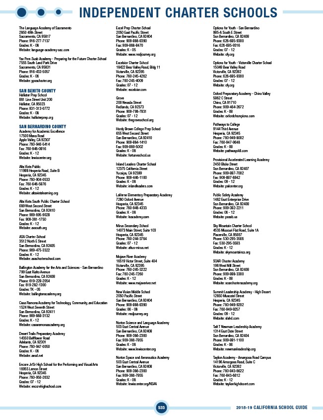 533 2018-19 CALIFORNIA SCHOOL GUIDE