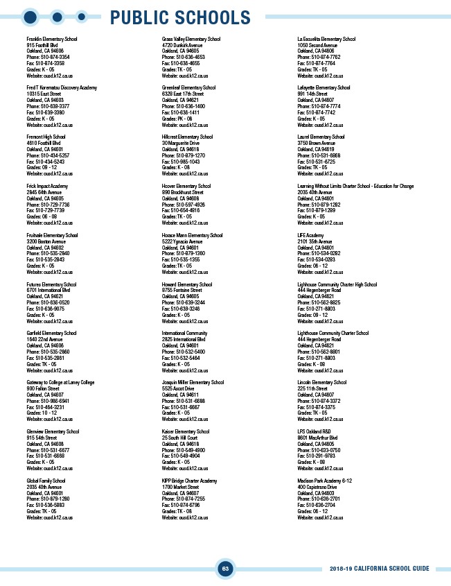 63 2018-19 CALIFORNIA SCHOOL GUIDE