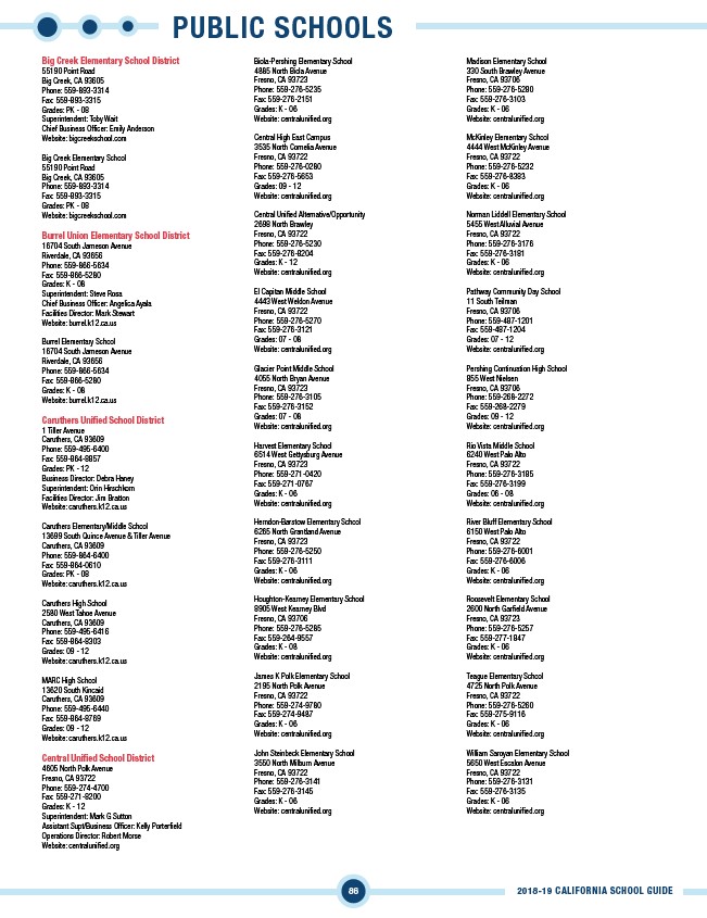 86 2018-19 CALIFORNIA SCHOOL GUIDE